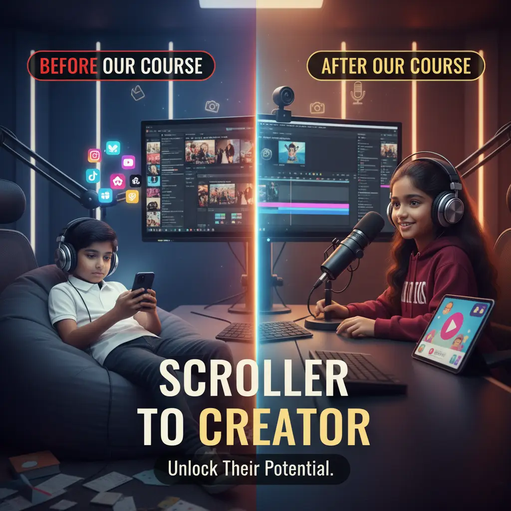 This becomes their launchpad to reach 4,000–5,000 followers by age 18 — in their own interest area. 📈 It’s not just a course — it’s the start of their digital identity.
